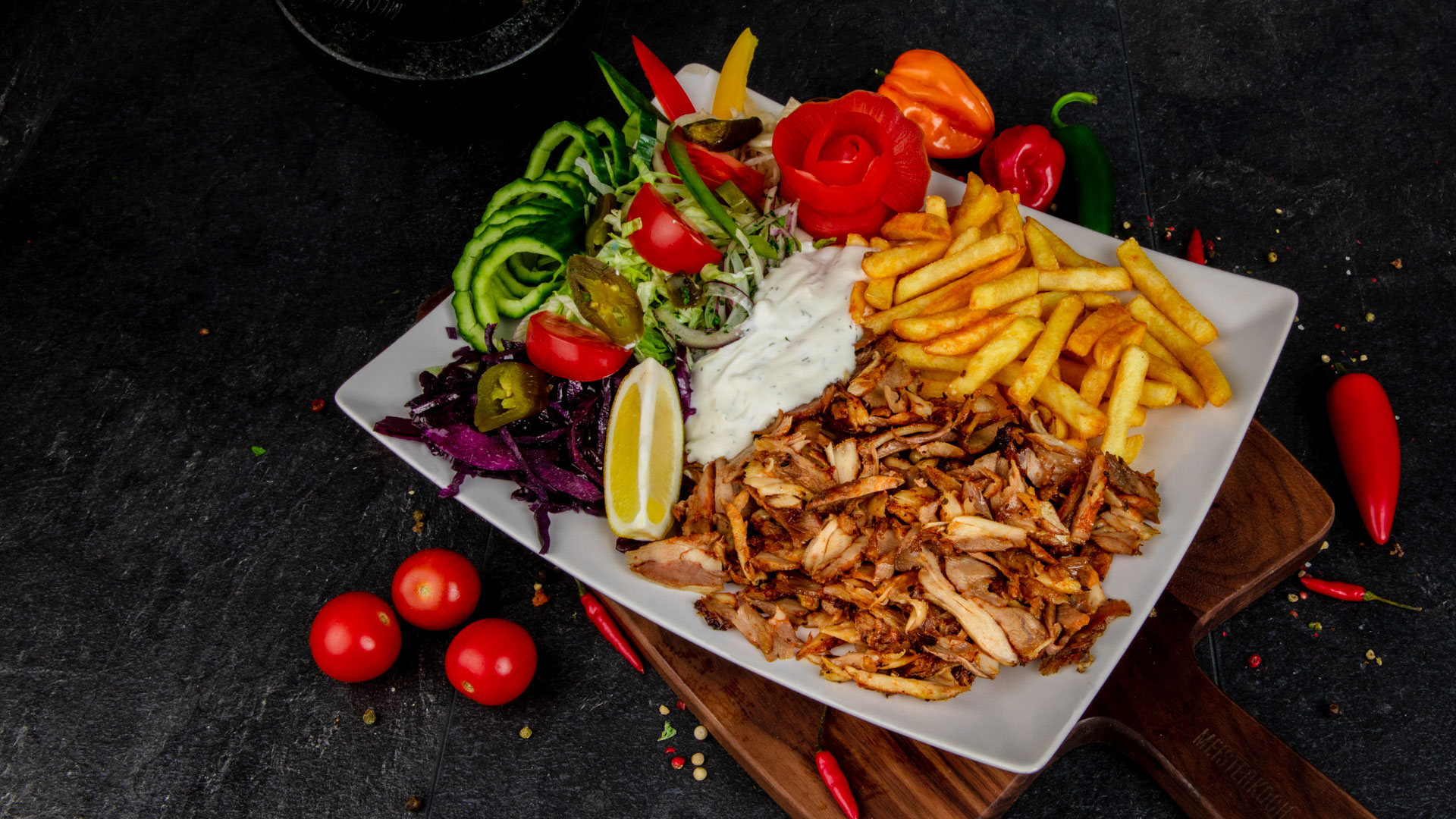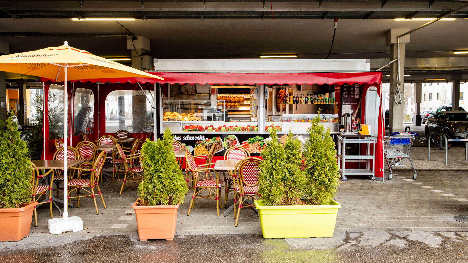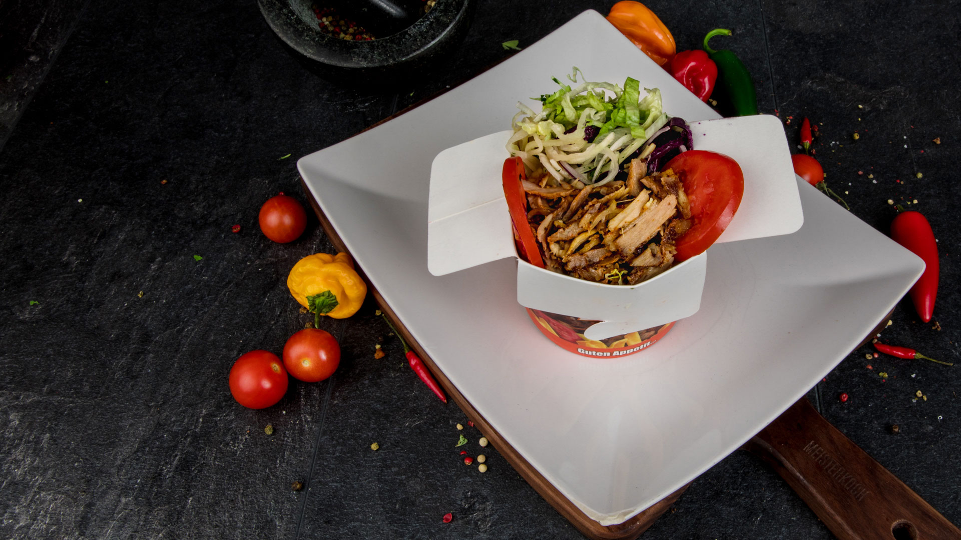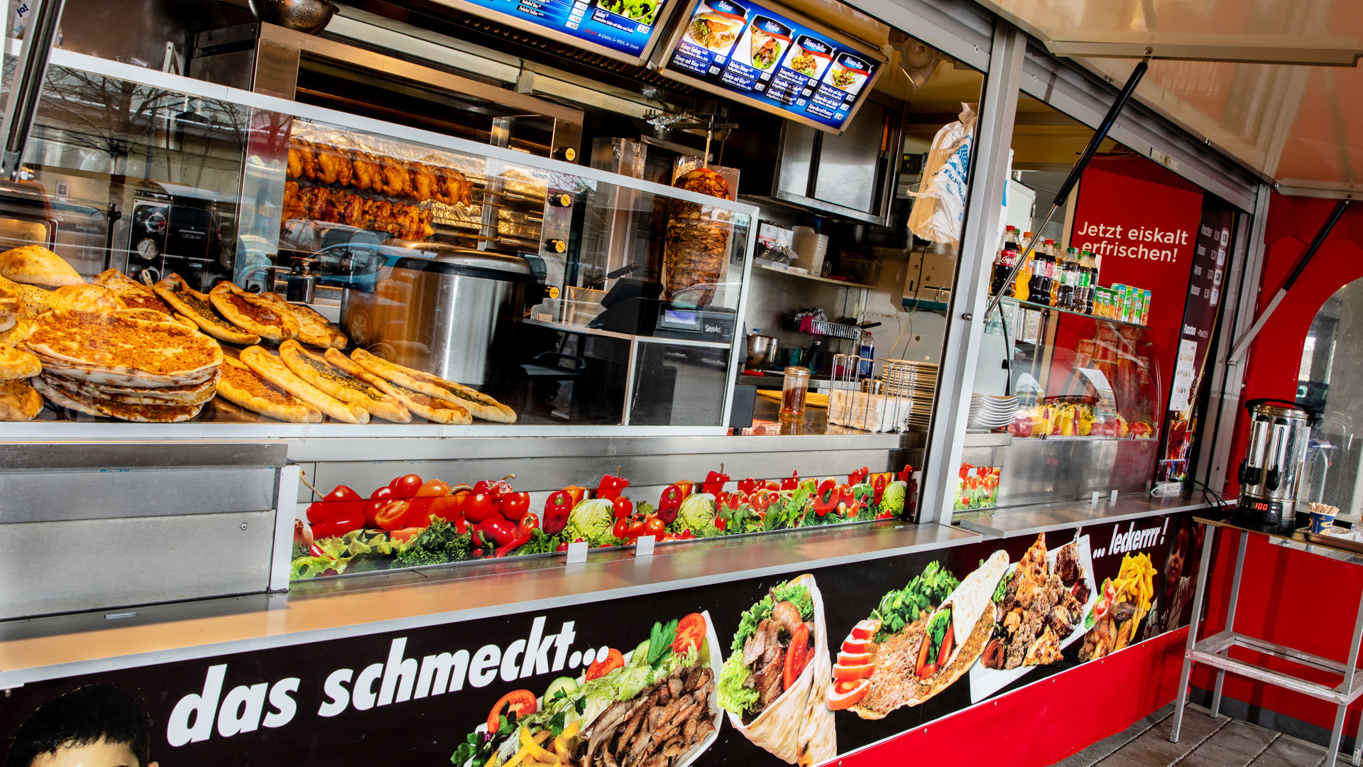 Die Mittagspause genießen mit knusprigem Döner, gegrilltem Hähnchen, frischem Salat und zahlreichen anderen leckeren Spezialitäten.