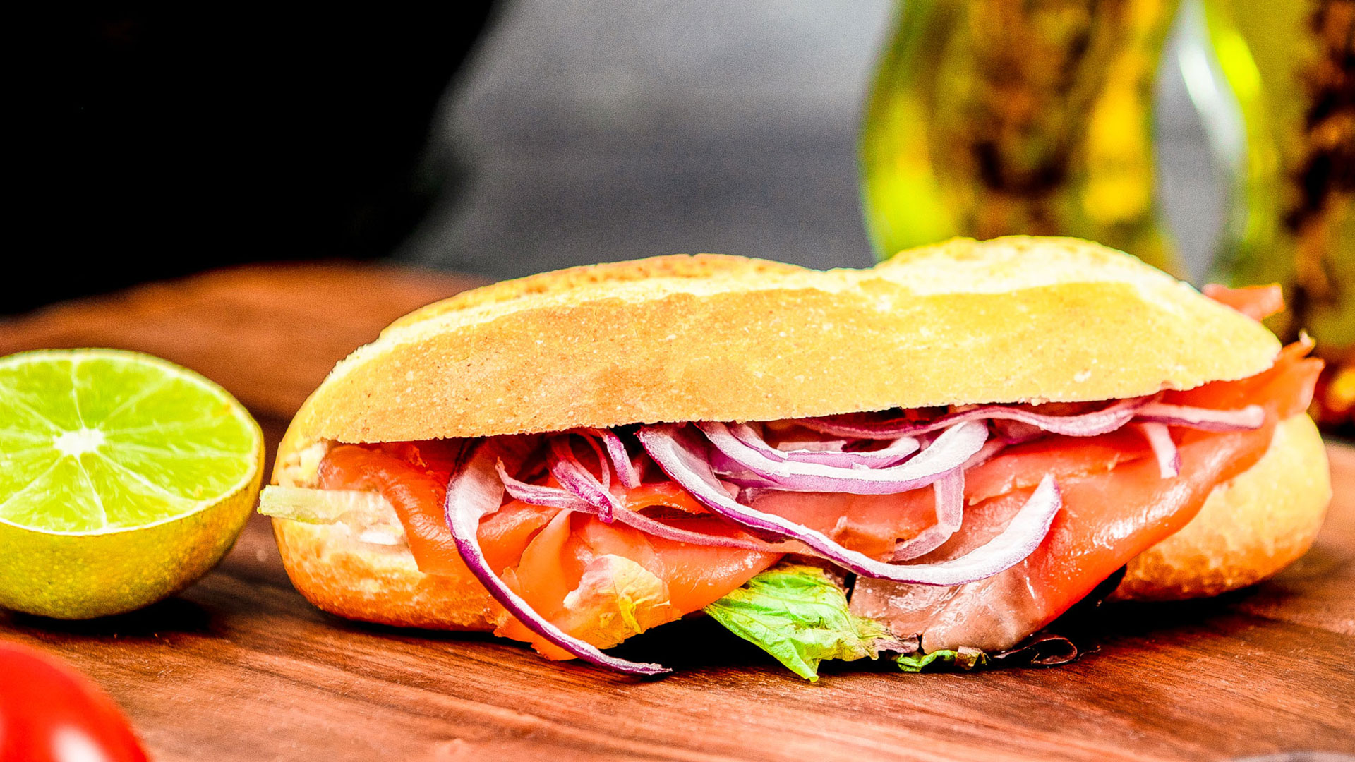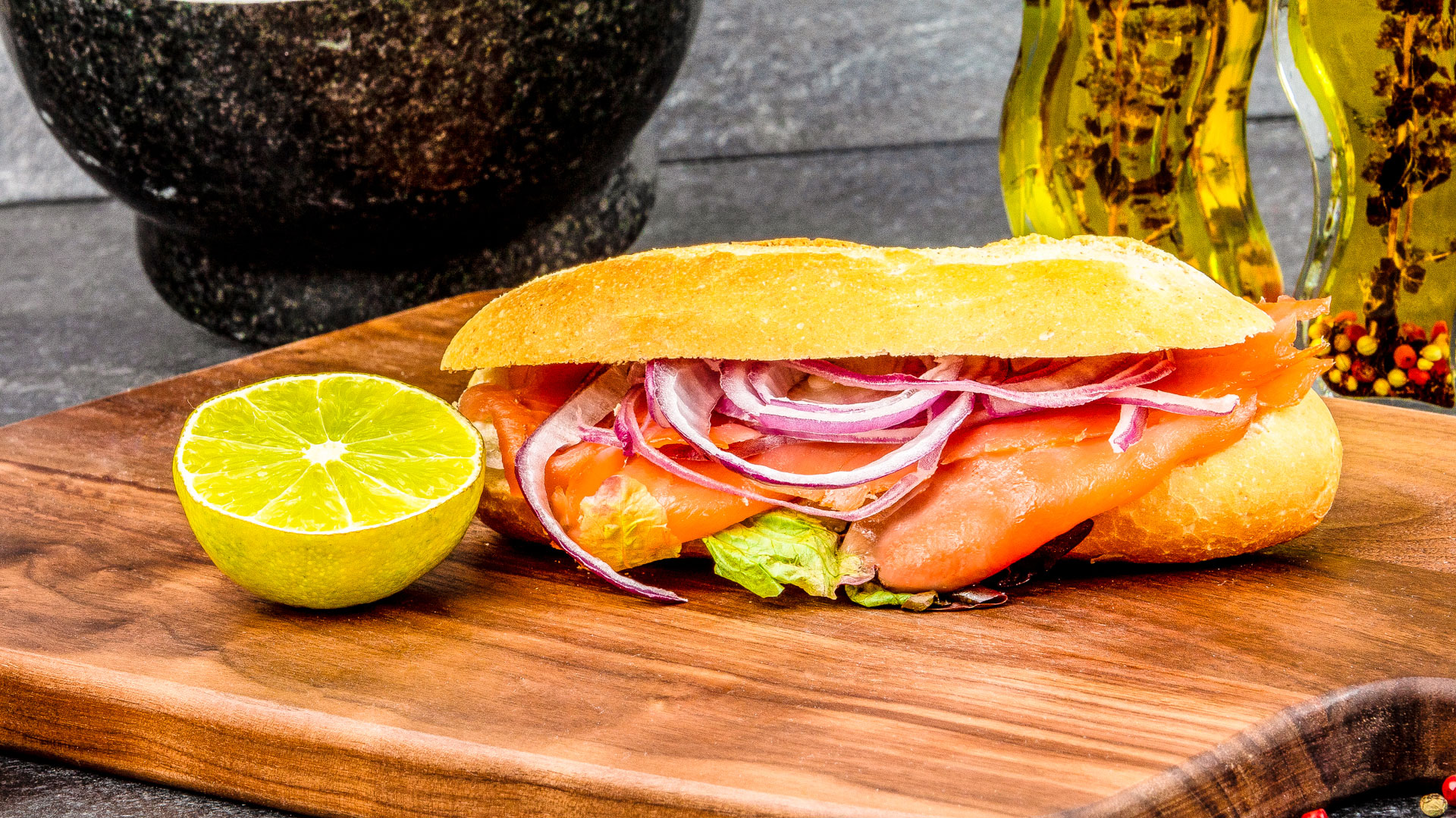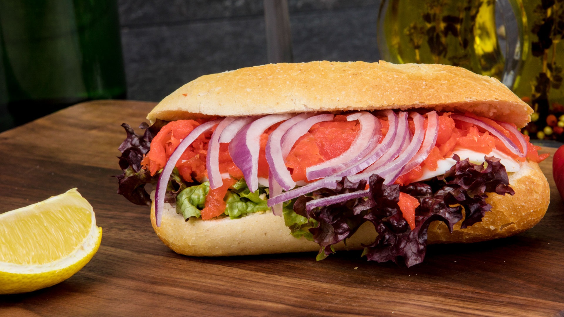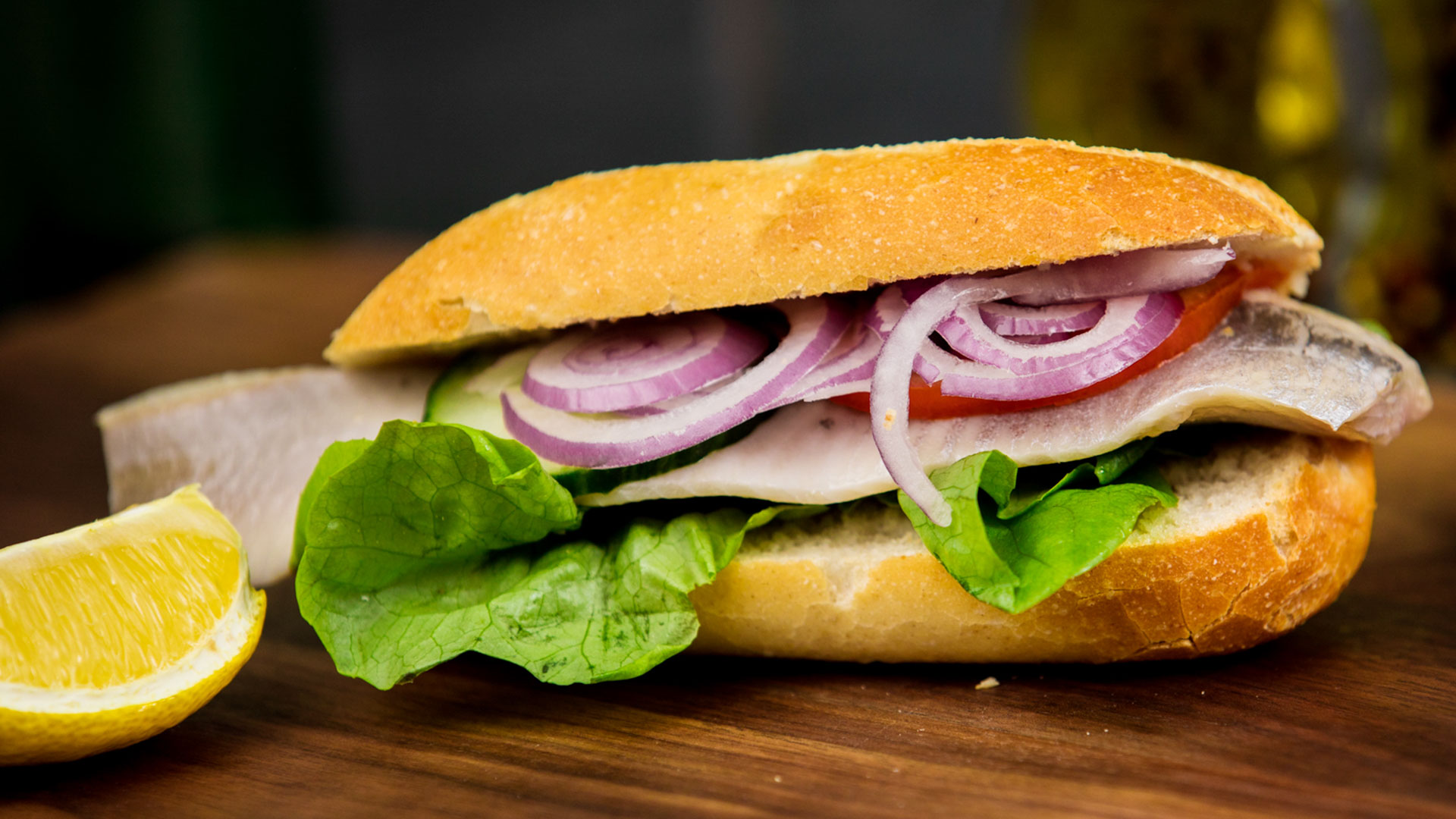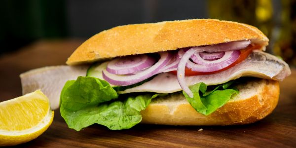 Täglich frisch belegt mit besten Zutaten. Wahlweise mit Lachs, paniertem Fisch, Bismarkhering oder Makrele. Verfeinert mit Zwiebeln, sauren Gurken frischen Tomaten oder Salat sowie bei gebackenem Fisch mit würziger Remoulade.